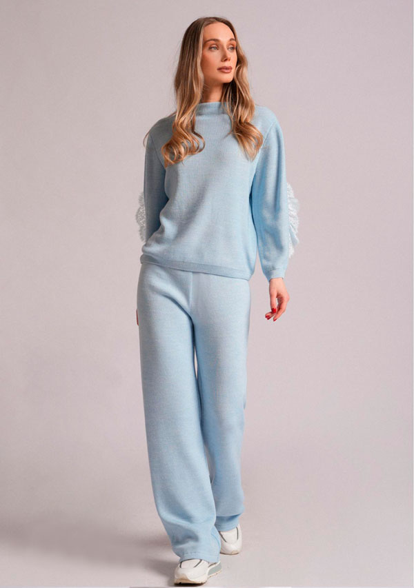 Комфортные трикотажные брюки прямого силуэта выполнены из смесовой хлопковой пряжи. Модель вывязана гладким кулирным переплетением. Верхний срез обработан трикотажным поясом с эластичной тесьмой. Благодаря лаконичному крою и комфортной посадке брюки станут отличной частью базового гардероба.