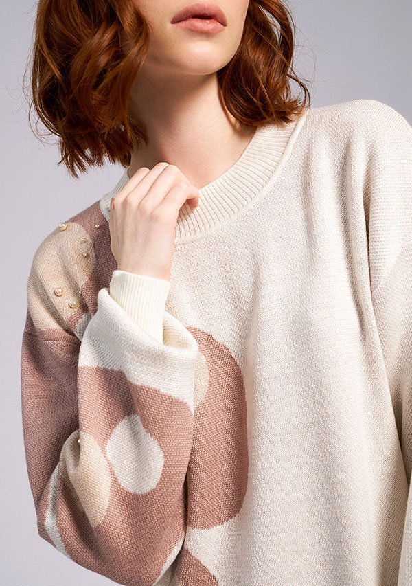 Комфортное трикотажное платье прямого силуэта выполнено из смесовой шерстяной пряжи. модель выполнена з-х цветным жаккардовым переплетением с авторским рисунком. Линия плеча слегка спущена, рукава втачные прямого кроя. Линия горловины округлой формы обработана эластичной трикотажной бейкой. Изделие декорировано ручной вышивкой. Платье прекрасный самостоятельный предмет гардероба.