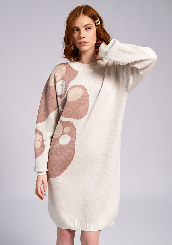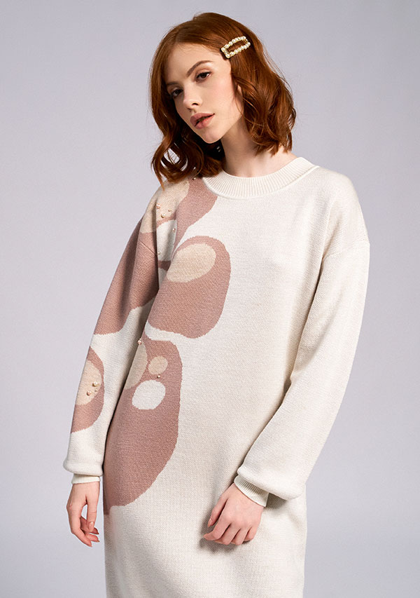 WW-2517 Прямое трикотажное платье с трёхцветным авторским рисунком.