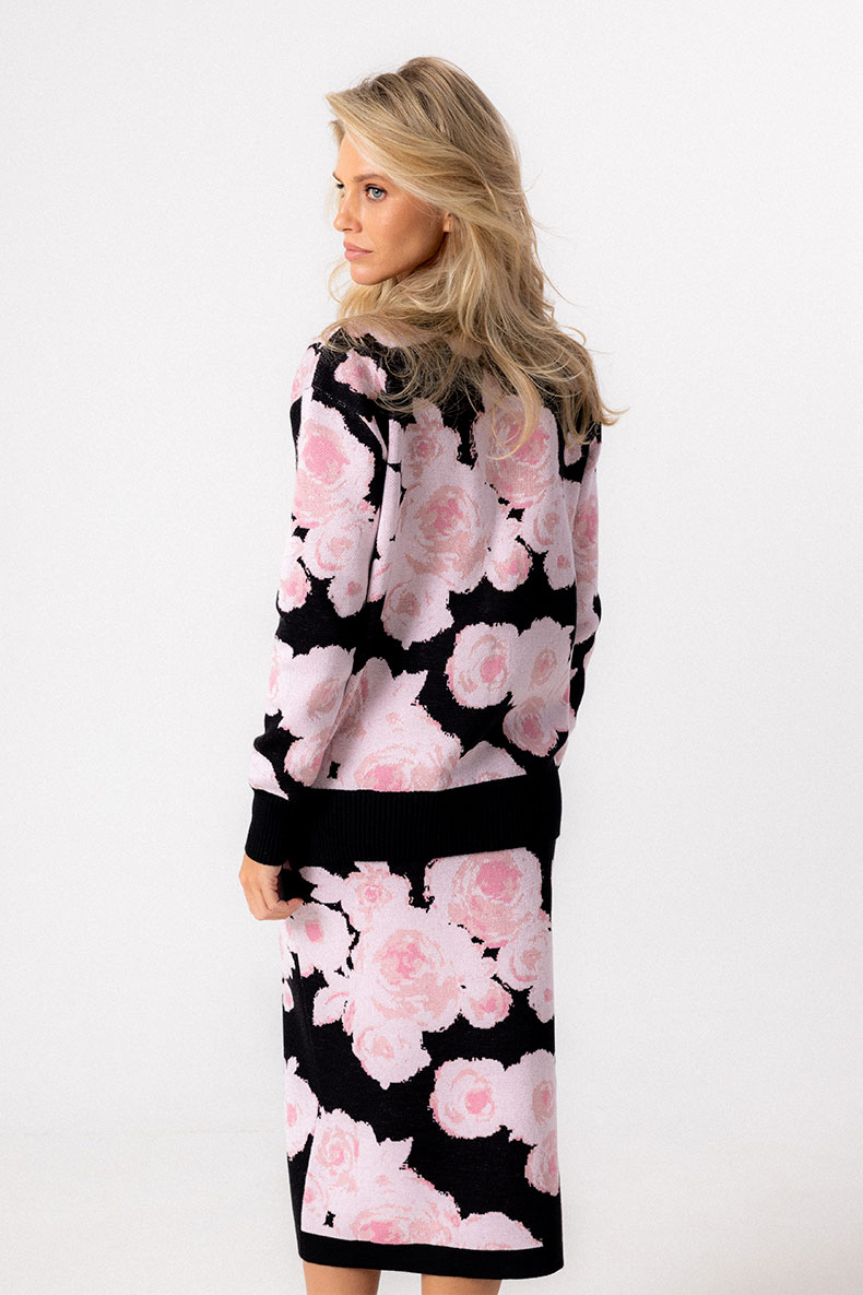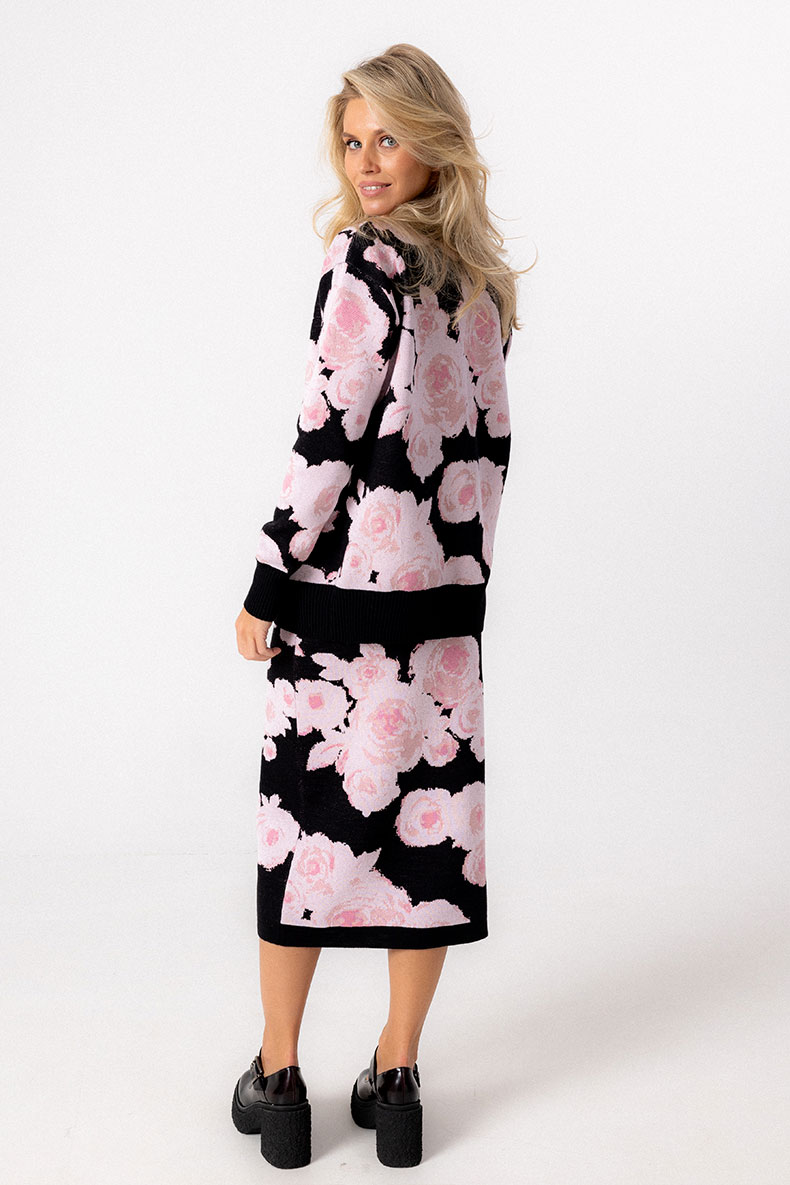 Женственная трикотажная юбка полуприлегающего силуэта выполнена из смесовой хлопковой пряжи с шерстью. Модель вывязана 4-х цветным жаккардовым переплетением с авторским цветочным рисунком. Верхний срез обработан трикотажным поясом с эластичной тесьмой. Юбка отлично сочетается с джемперами и кардиганами различного кроя.